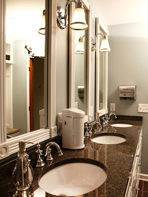 It's Complicated was on this weekend, did you catch it? The part where Meryl Streep's character asks for no "his" and "her" sinks in her bathroom remodel reminded me of these bathrooms with triple sinks. If you have multiples or even just 3 kids this would be a amazing. If you had the space and the need would you do it? Or would it be just one more thing to clean?